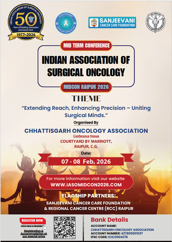 It is a privilege and an honour to serve as the Honorary Secretary of the Indian Association of Surgical Oncology (IASO) — a dynamic professional body representing the collective strength, knowledge, and commitment of surgical oncologists across India. As IASO enters its Golden Jubilee Year (1977–2026), we stand at a moment of pride and reflection — celebrating five decades of dedication to advancing cancer care, education, and research. From its humble beginnings to becoming a nationally recognized academic and professional force, IASO’s journey embodies the spirit of excellence, collaboration, and service.