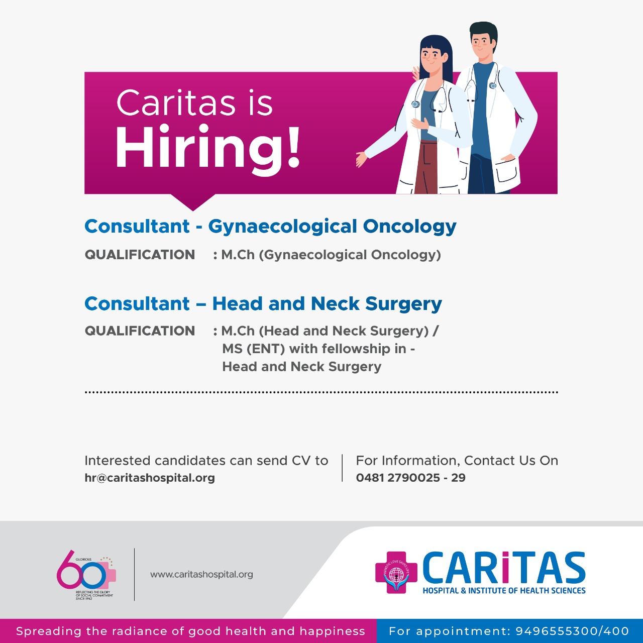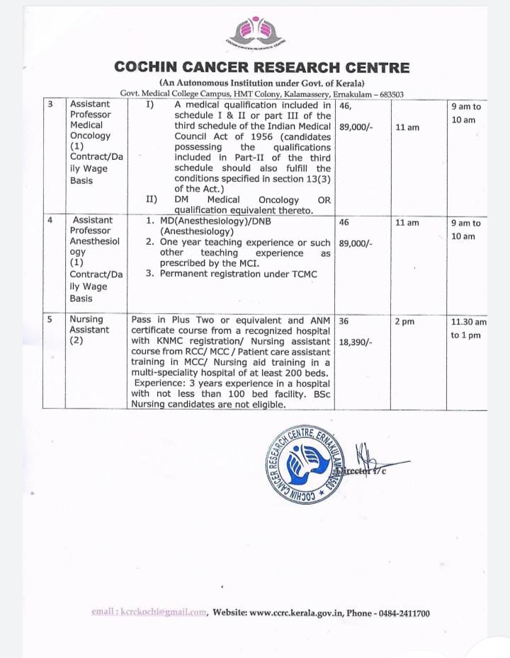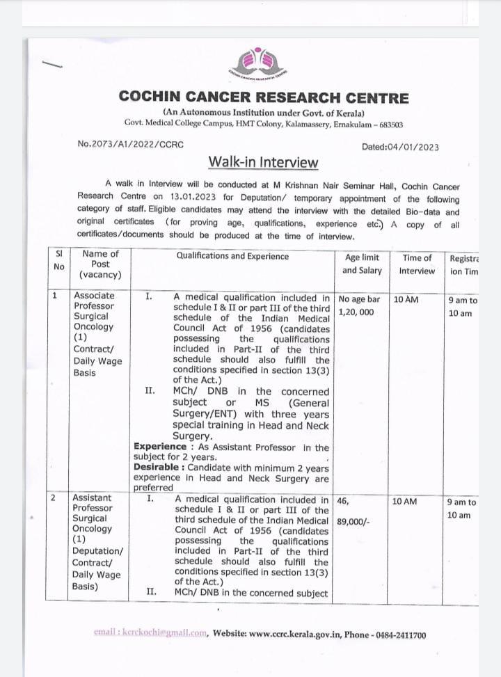 Consultant Surgical Oncologist: DrNB/MCh in Surgical Oncology preferably with experience in GI & Thoracic Oncology in any reputed institute.